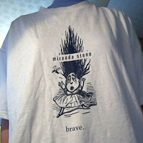 White t-shirt with "brave" blue-haired girl logo-