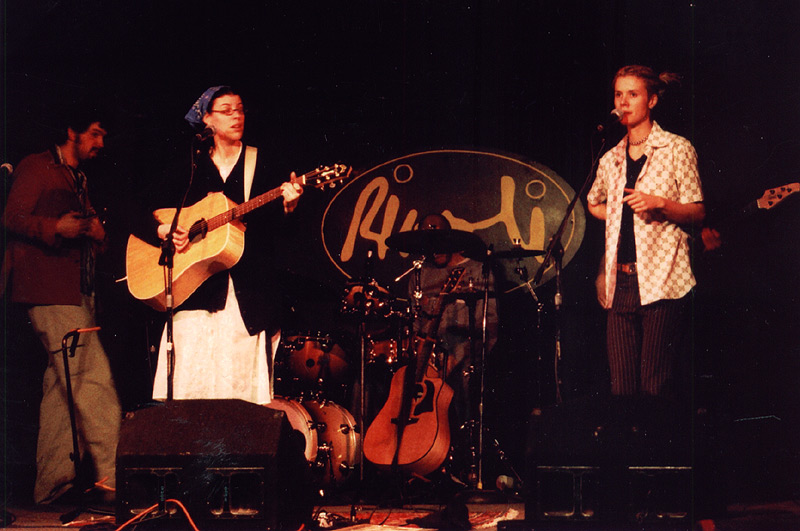 In February 2003, we had a party for all our Toronto friends to celebrate the release of the third album "7 Deadly Sins." We took over the Rivoli (one of our more favorite rooms in Toronto with a packed house and a bunch of sweet-faced girls dressed in nun's costumes to take tickets (in keeping with the deadly sins theme!) Folk/pop songwriter Mary Simon opened up the night for us before we launched ourselves into a sweaty set of tunes supported by Mark Abraham on bass, Robin Pirsin on drums, and Tony Lind on electric guitar. There were also special guest appearances by Ben Bowen on trumpet and Mary Simon and Ember Swift on Backup vocals!