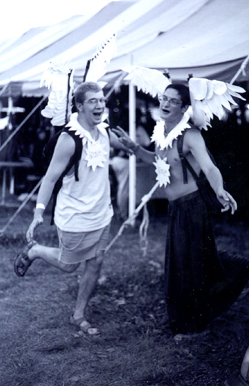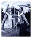 | Angel boys: wings out of paper plates make these guys the hit of the show. (Brandon and Brent are the guys with the creative edge) |