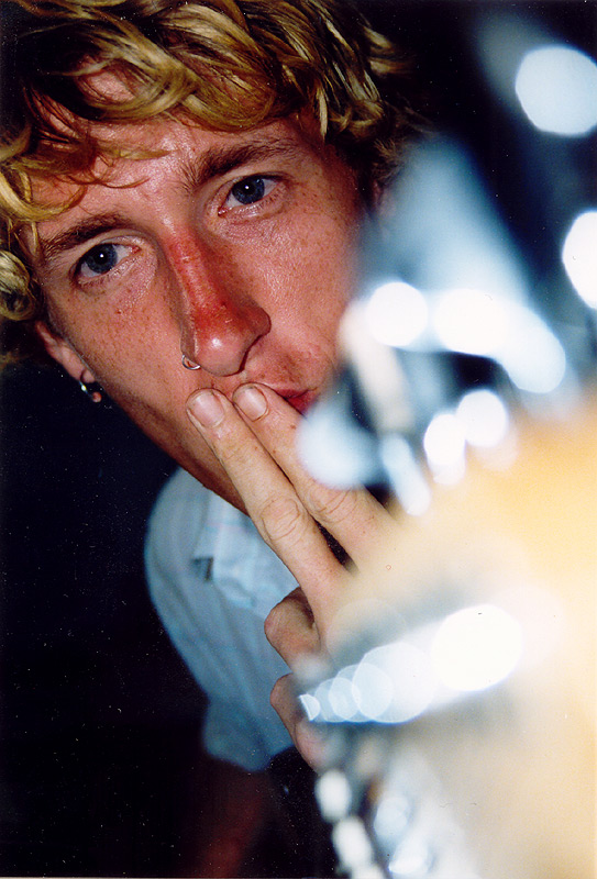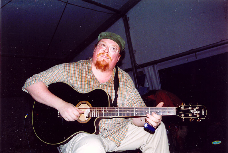 | Mike Choby (from the Chicago area) tuning up backstage before the show. |