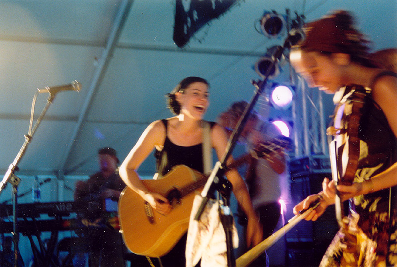 | This shot conveys some of the joyful alive-ness of Miranda with a band in tow. Here Erin Beck joins Miranda on the violin, during the Spanish infused "Nevertheless the Dog" |