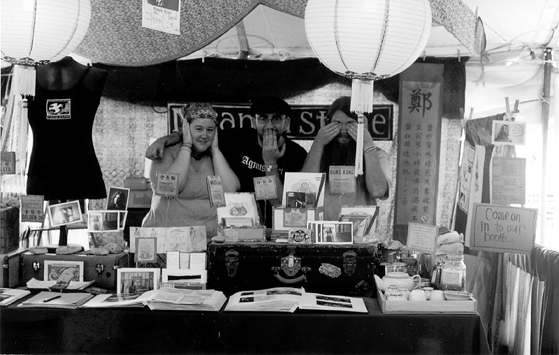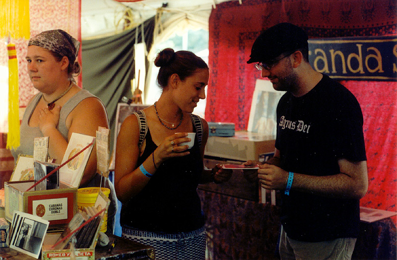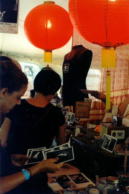 Miranda is (almost without fail) the very last artist to pack up her beautiful "merchandise/free Indian spiced tea stall/library;" the nicest place to relax in the mess of the exhibition tents. Here, Miranda's friend Joel surveys the destruction left after the crowds have gone. The festival is over for another year, sigh….. |