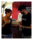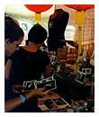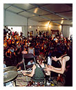 | Some last minute sound gear checks before the show, as the crowd starts to gather at the "magazine" stage… |