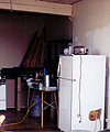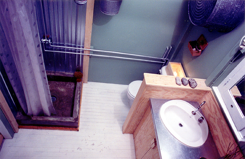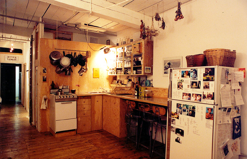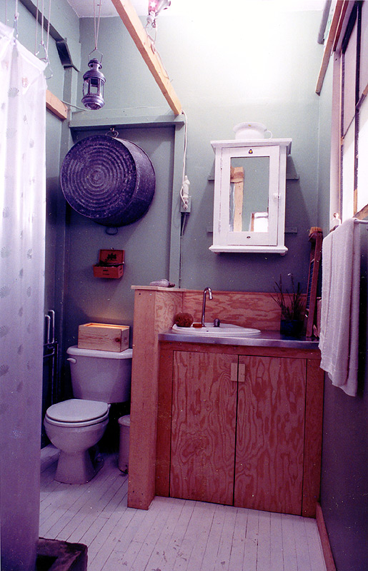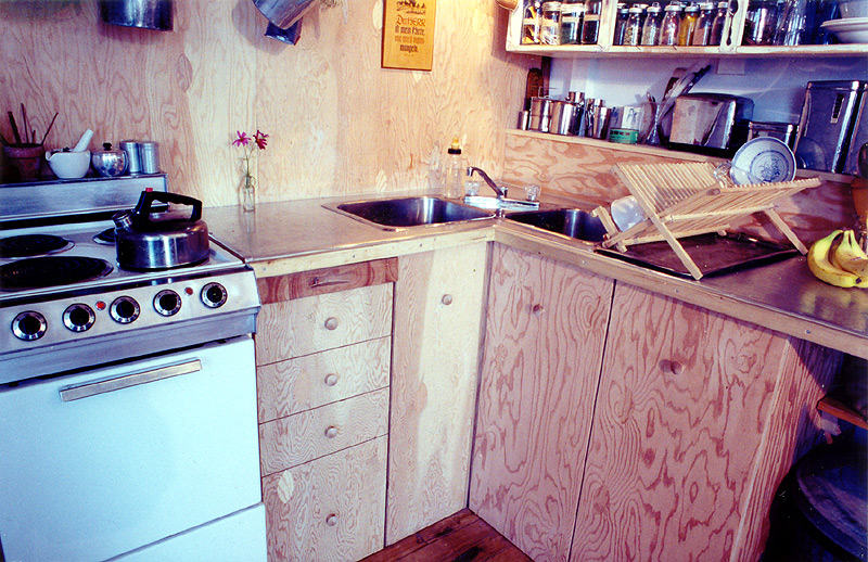 | When I first moved into the old pie-factory-cake-decorating warehouse in Toronto's east end, it wasn't live-able. 850 square feet of total wreckage and poor construction basically describes the place. The toilet was cracked in two places and needed replacing. The shower was a vinyl leaning tower of Pisa. There was no fridge, stove or kitchen shelving. The kitchen sink was thrown into a hole cut into a length of plywood perched on 4 x 4's. You could rock the counter about 2 inches either way. |