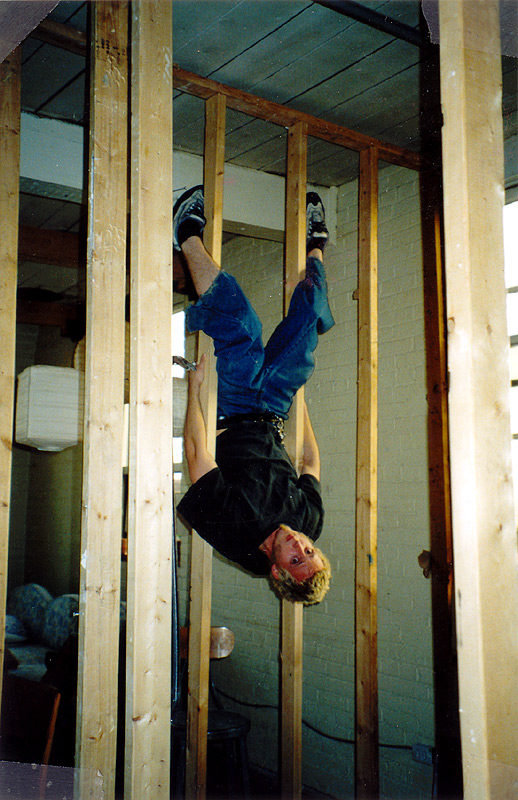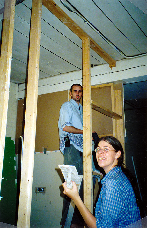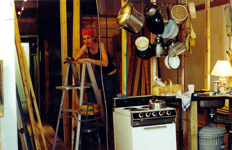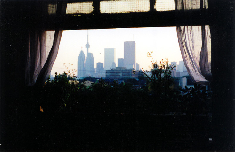 If I disappeared for a while between 2000 -2001 it was because I was learning (by trial and error) how to frame, dry-wall and plaster a wall, pour a concrete shower base, build closets and lofts, and use roofing aluminum to make kitchen counters. I discovered that my favorite power tool was the grinder, which I used to clean up the heavy rust on an old iron ladder for the guest sleeping loft. This was accomplished on the roof of the building with the help of next-door neighbor Paul, who sometimes lent me tools. The spray of orange and red sparks with the Toronto skyline in the background was almost "beer commercial" quality.