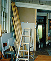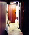 | Here are a few "before renovation" shots, of the larger space beyond the bedrooms and bath, the kitchen area, with the hall leading to the front door. |