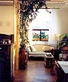 The three windows in this loft are one of the best features. The wide windowsills are a great place for growing herbs and bright red geraniums. |