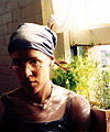 Taking a tea break, covered in dust, after a hard day of dry wall sanding. |